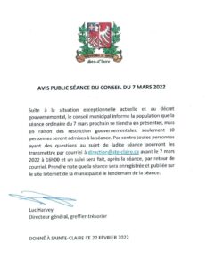 Avis public séance du 7 mars 2022
